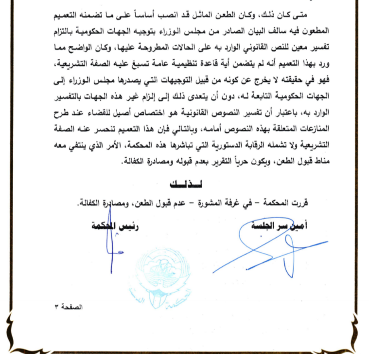 (*) يراجع في ذلك حكم المحكمة الدستورية رقم 6/2024 طعن مباشر- جلسة 10/7/2024 الذي نورد نصه لتيسير الرجوع إليه: